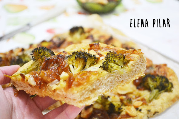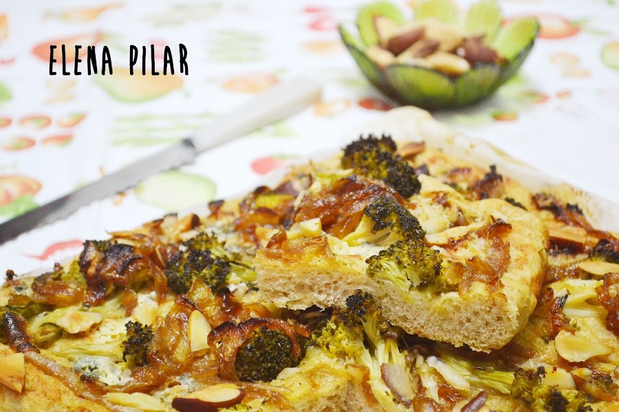 Focaccia integral de brócoli, queso azul y nueces de Brasil: