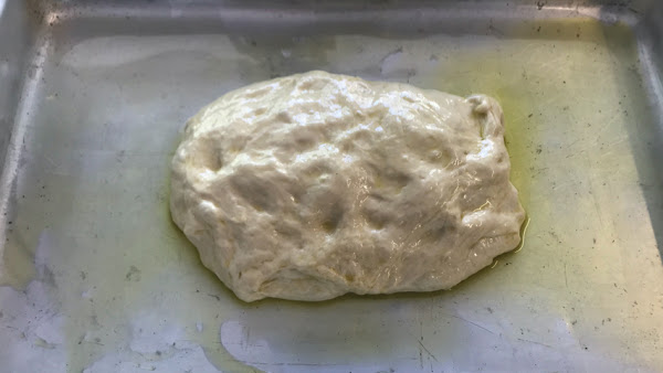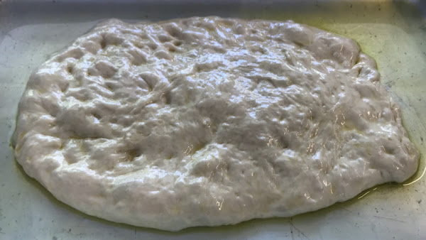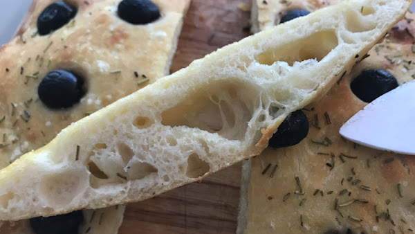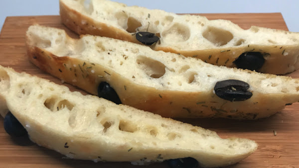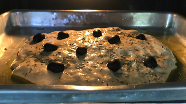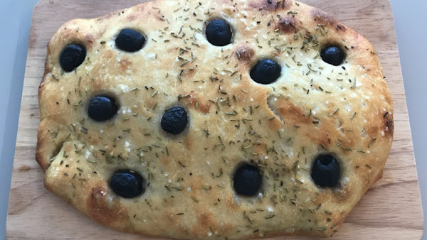 Incrusta algunas aceitunas en la superficie de la masa.