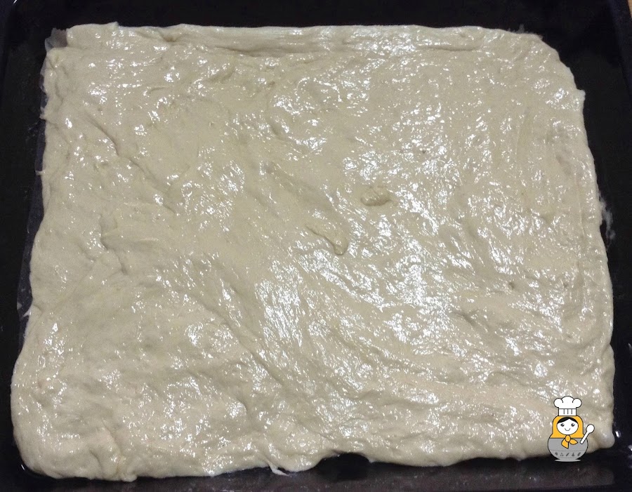 Pasado este tiempo, vamos a extender la masa sobre una bandeja de horno untada con aceite de oliva.