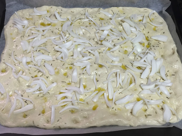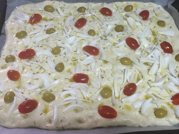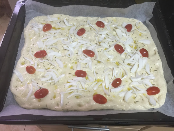 Esta focaccia está buenísima, sale mucha cantidad, puse la masa en la bandeja del horno pero eso empezó a subir y quedó un pelín grueso, quizás para la próxima la haré en dos bandejas y poder hacerlas más finas. Y si no queréis hacer tanta, dividir las cantidades.