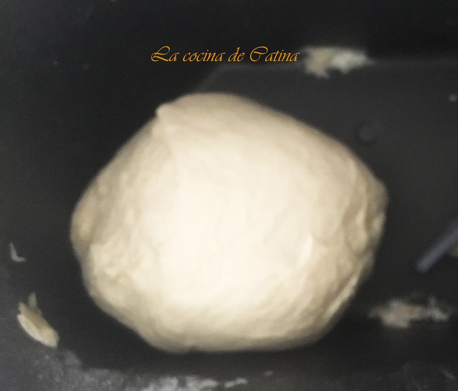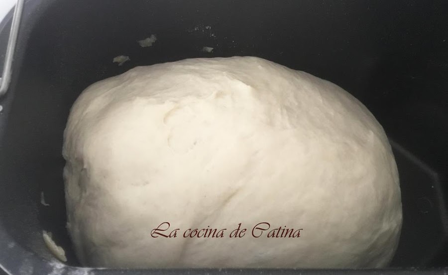 Para los que dispongan de panificadora, ponemos primero en la cubeta los ingredientes líquidos, el agua, el aceite, a continuación la sal y la harina. Seleccionamos el programa 7 y lo amasamos y dejamos fermentar durante una hora.