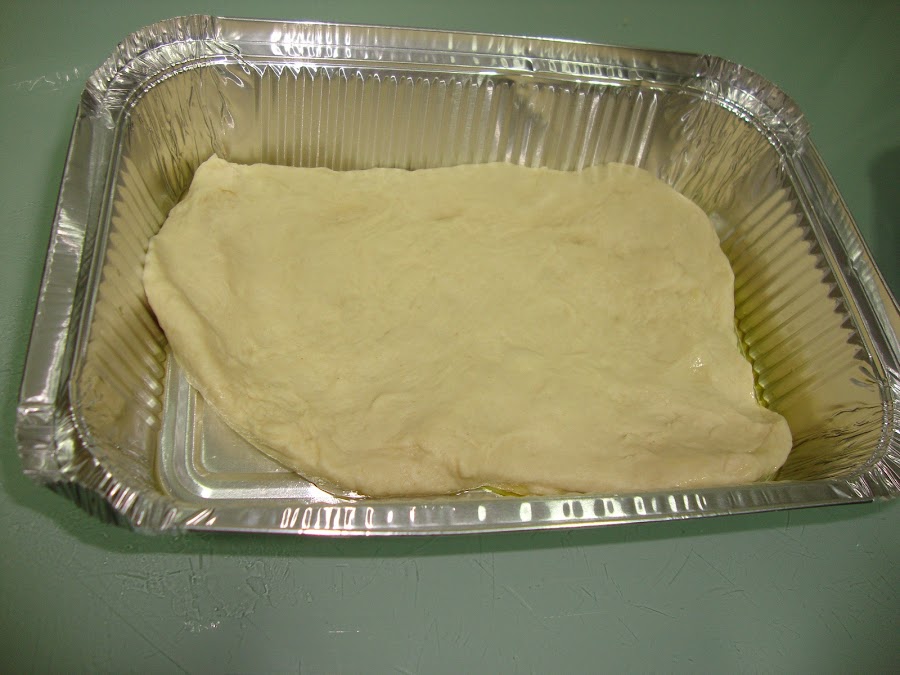 Untamos unos moldes desechables con aceite de oliva y dividimos la masa en porciones de unos 150 gr y la extendemos en la base de los moldes (yo los hice de 180gr pero quedaron muy gruesas).