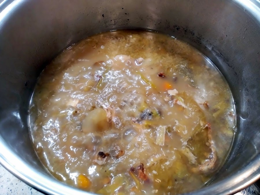 éste caldo delicioso que servirá como consomé o como fondo para cualquier receta que necesiten enriquecer. Incluso pudiéndose congelar en pequeñas porciones....