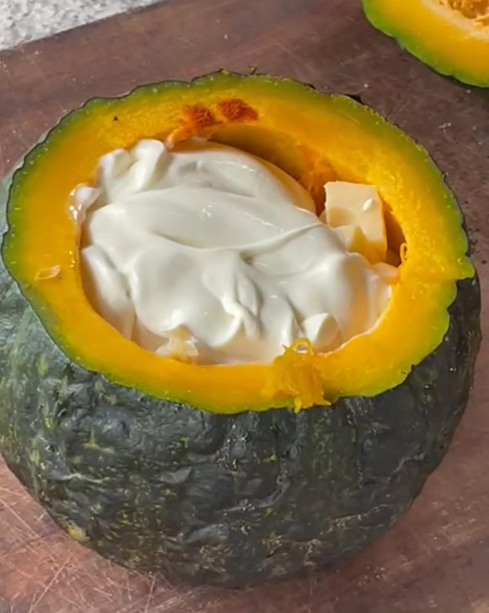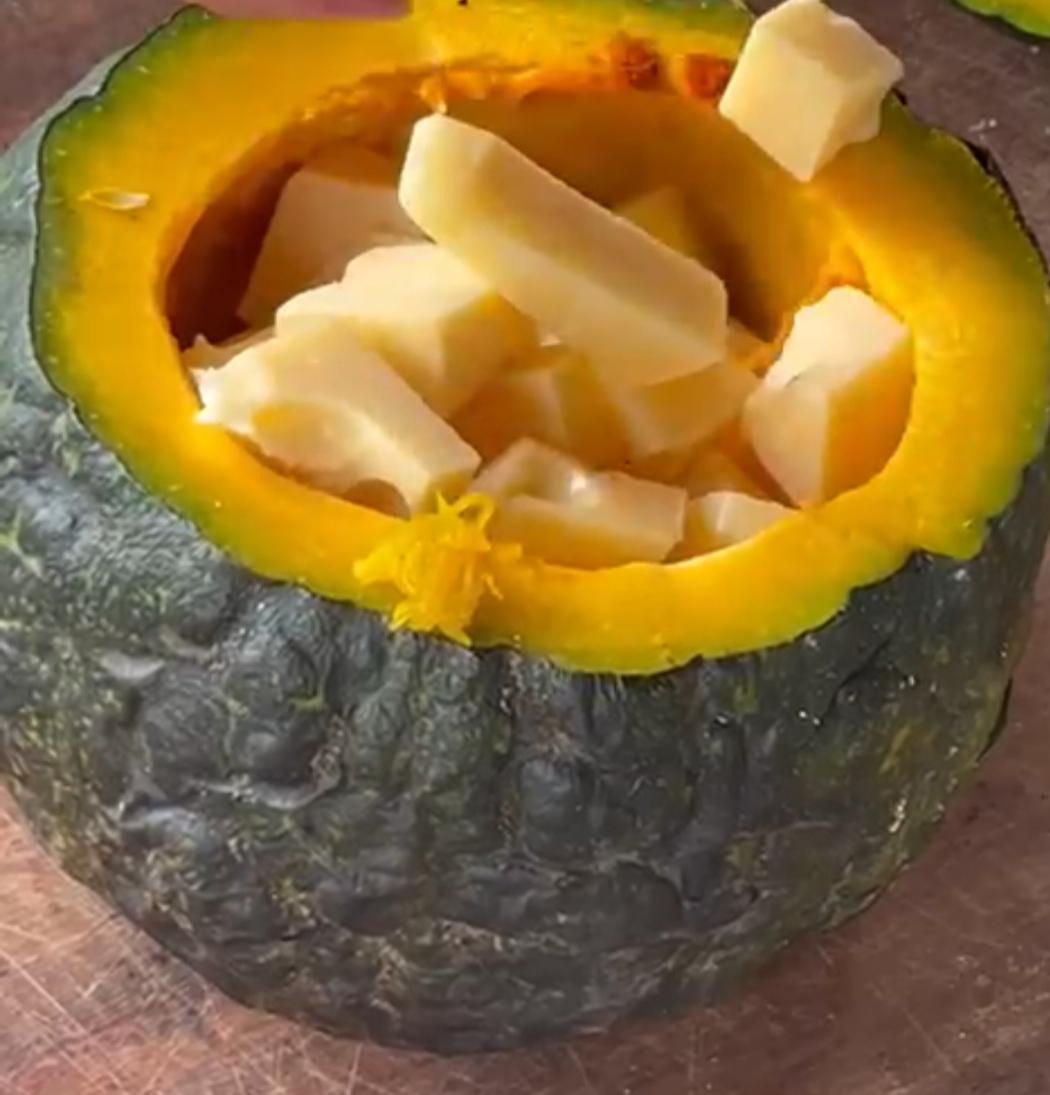Llevalo al horno y cuando el queso esté derretido mezclar con la pulpa del zapallo
