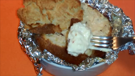 Vierte la mezcla de quesos fundidos en el interior de la hogaza, coloca de nuevo la tapa de pan y envuélvelo todo bien en papel de aluminio.