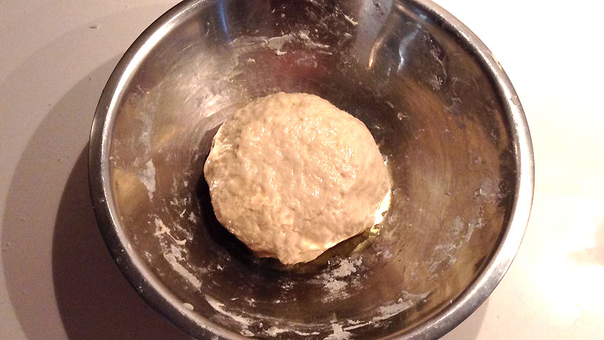 Una vez hecha la masa se deja reposar en un bol con un poco de aceite de oliva y cubierta con un plástico. 2-3 horas, hasta que veas que ha subido bastante.