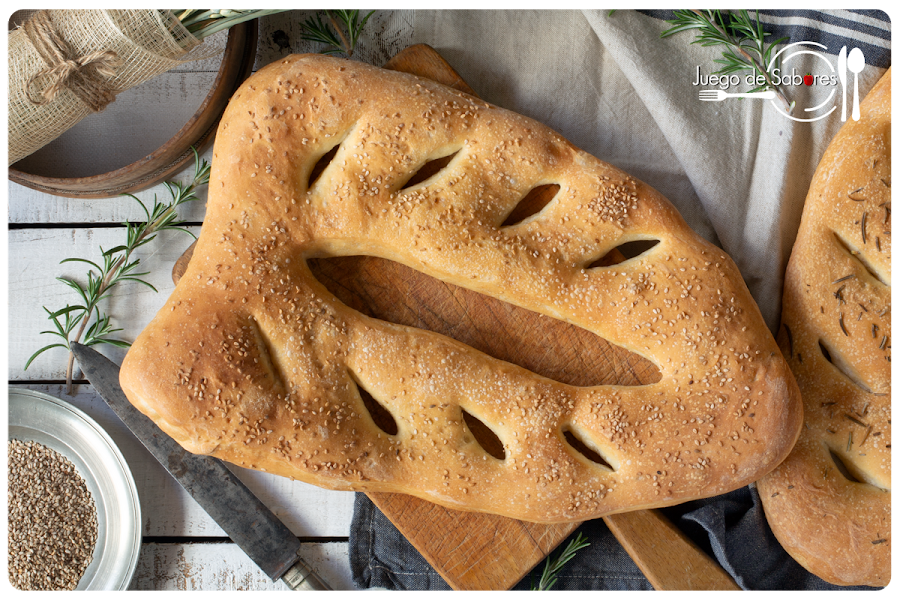 Calentar el horno a 220º calor arriba y abajo. En el momento de meter la fougasse al horno, bajar la temperatura a 200º y hornear durante 20 minutos cada una.