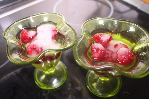 Llenamos dos copas de frambuesas.