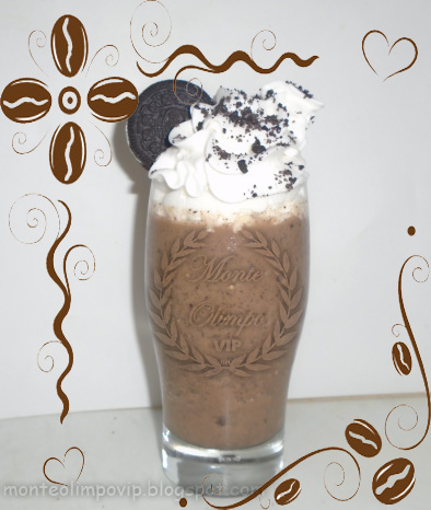 En una licuadora vierte la leche, las galletas, la Cocoa (17 Galletas) y el Café y mezcla por unos pocos segundos sin deshacer por completo las galletas. Luego vierte la mezcla en un vaso de tu preferencia, dejando unos dos centímetros libres antes de llegar al borde, agrega la Crema Batida en forma de espiral y decora espolvoreando la Galleta Oreo triturada y colocando una Galleta entera para finalizar y listo, así de fácil tenemos nuestro Frappé de Café y Chocolate.