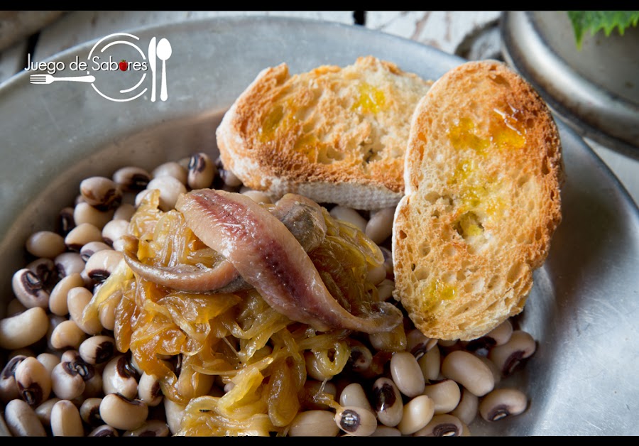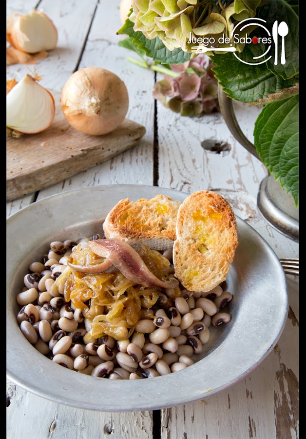 Pasar los fréjoles por un colador y servir con abundante cebolla caramelizada, unas anchoas, pan tostado y un buen chorro de aceite de oliva.