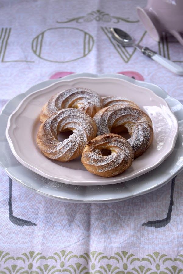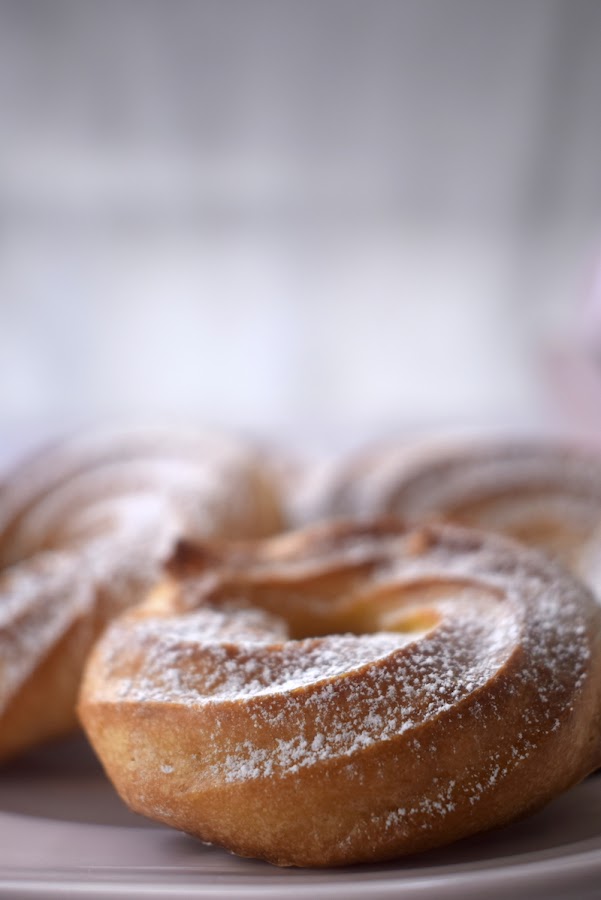 Los French Crullers son unos pastelitos en forma de donuts rizados que se elaboran con pasta choux y que pueden ir fritos, como se hace tradicionalmente, o al horno, como os lo traemos hoy.
