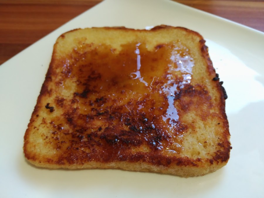 - Pasamos las rebanadas por la mezcla, que empapen bien y las freímos en la sartén hasta dorar.