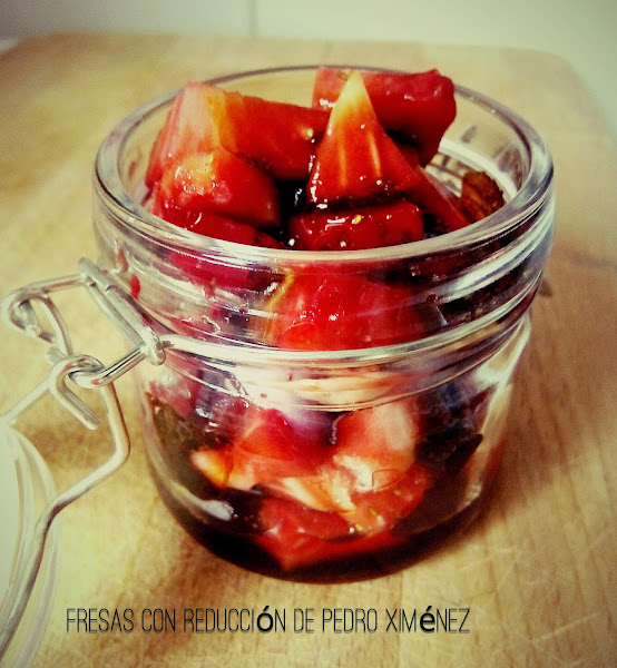 Habíamos comprado fresas y las íbamos a preparar con vinagre y azúcar, como habitualmente. Mirando por Instagram vi una foto de fresas y Pedro Ximénez y como tenía todos los ingredientes en casa, me puso manos a la obra.