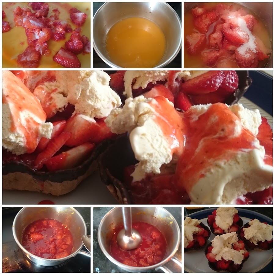 Unas fresas, helado de vainilla y maravillosa salsa.....uhmmmm..... aunque sea diciembre...