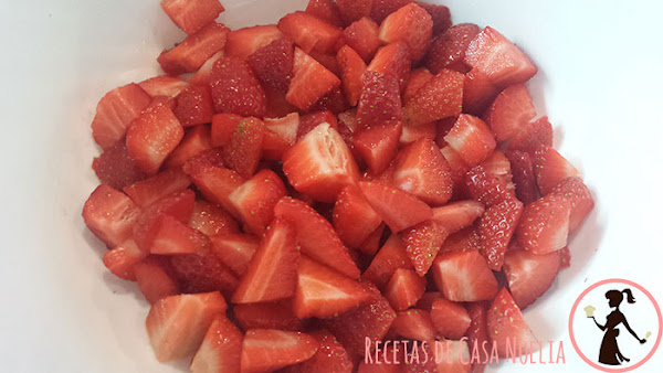 Lo ideal para este postre es que lo hagáis un rato antes de comerlo, pero tampoco mucho, que si no las fresas se empiezan a poner blandas y pierden toda su textura. Pero si lo podéis hacer antes de empezar a hacer la comida, mucho mejor. Como un par de horas antes de comerlo.