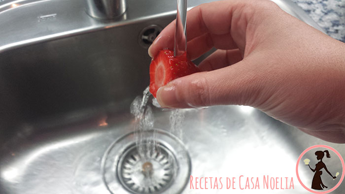 Lo primero es cortar el rabito de las fresas (quitarle la parte verde)