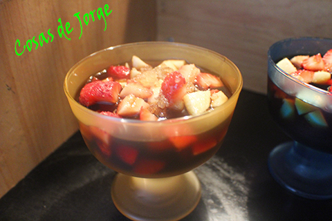 Cubrimos las frutas con el vino.
