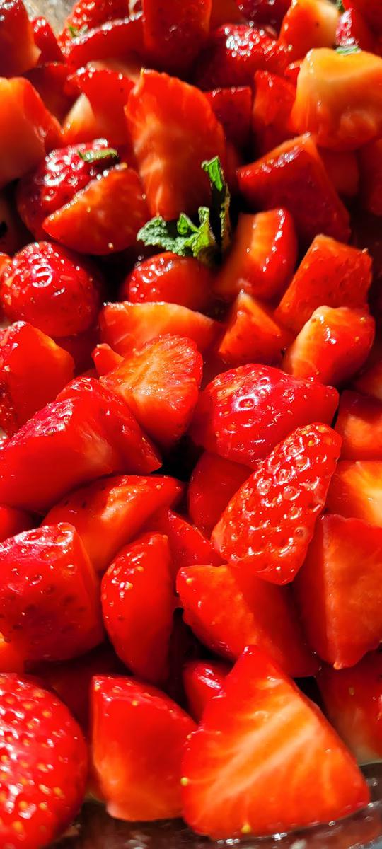 Hola a todo@s… Aquí te traigo unas exquisitas fresas con zumo de naranja, hierbabuena y Pedro Ximénez, una delicia de postre, sano y diferente…le puedes poner, si quieres unas gotitas de edulcorante, pero realmente, no le hace falta.Te lo recomiendo ampliamente, ya que es bastante rico, sano y a todo el mundo, le gusta. Es simplemente cortar las fresas, añadir zumo de naranja, agregar el vino, el limón, la hierbabuena y ya lo tienes. Procura hacerlo al menos dos horas antes, para que se macere y tenga mucho sabor. El color que resulta de las fresas es un rojo intenso, muy bonito.