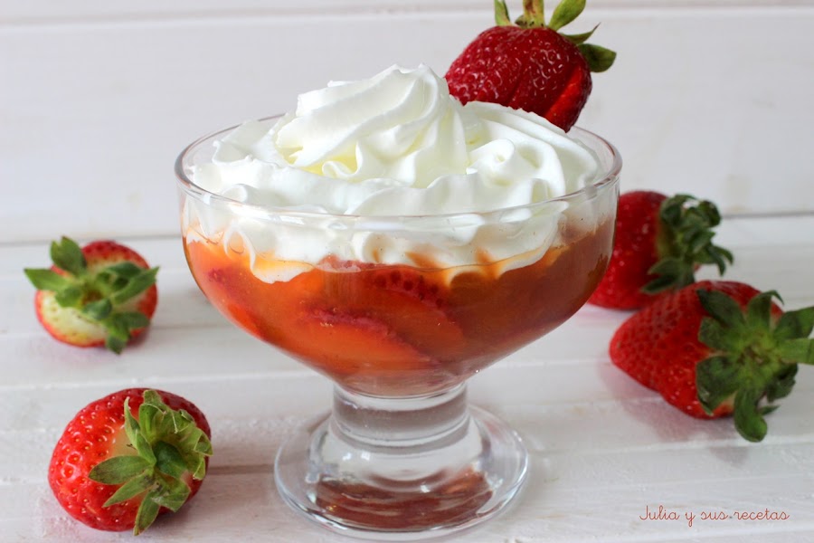 Las servimos tal cual o acompañadas de nata (crema de leche) por encima...a vuestro gusto.