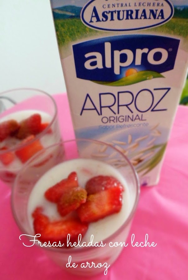 En segundo lugar, añadiremos a los vasos de fresas la leche de arroz.