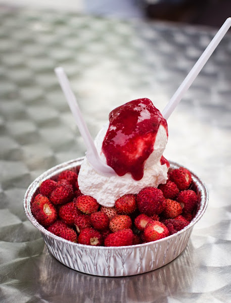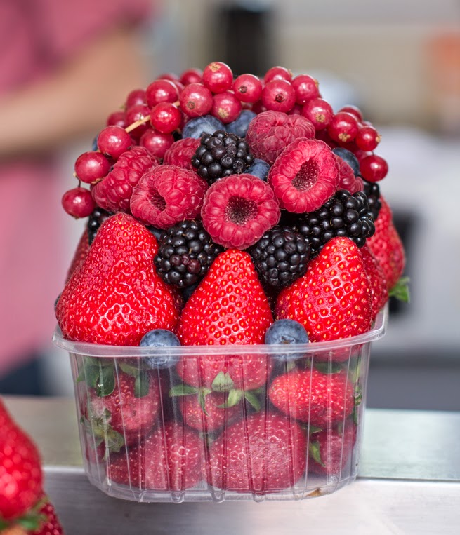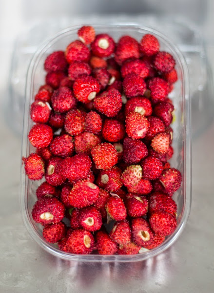 En la última visita de este mes encontramos la tan deseada fresa. La señora que las vendía me explicó que son muy delicadas y se estropean con la manipulación, por lo que no suelen salir de la zona de la Vega. Además, solo se recogen en un periodo corto de la primavera (suele ser en Mayo), con lo que hay que añadirle el componente de extrema temporalidad.