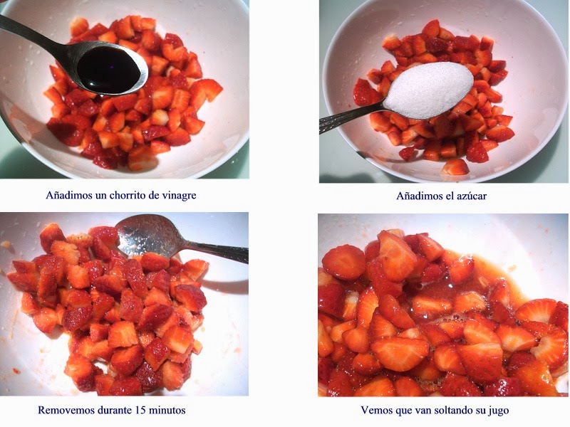Lavamos los fresones, sacamos los rabitos y los cortamos a trocitos pequeños.