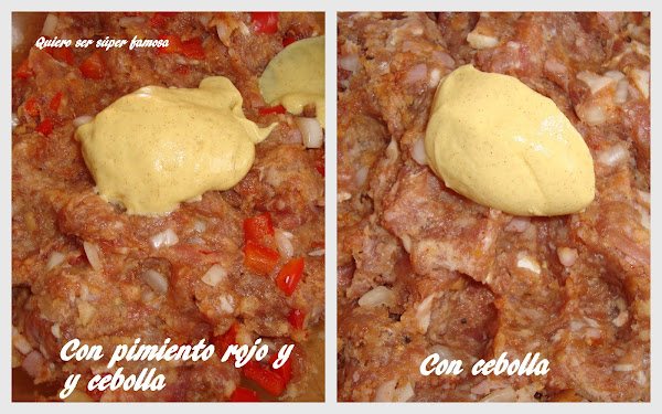 Yo le pongo la mostaza al final porque como es algo fuerte creo que es mejor hacerlo cuando ya están todas las especias y la sal bien integradas. En este caso lleva dos cucharaditas cada una de las mitades. De nuevo mezclar bien con las manos, o con un tenedor.