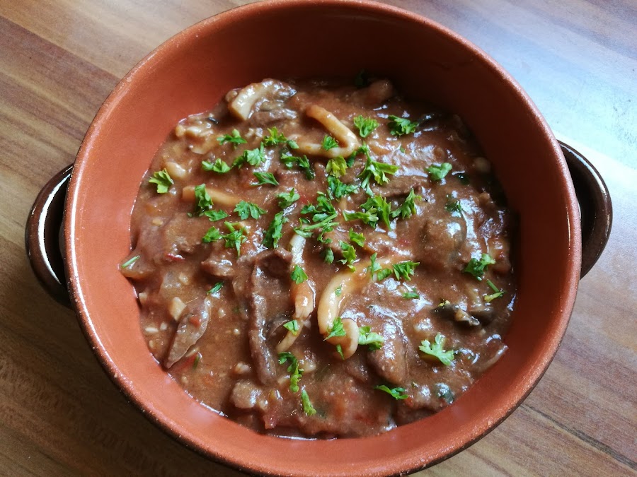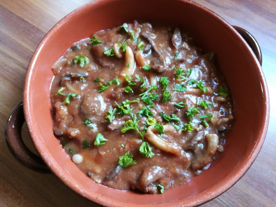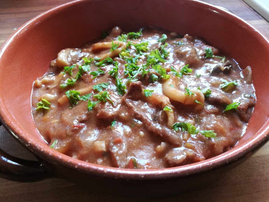 Recetaza típica de mi tierra, el fricandó se hace siempre con ternera, con la parte más tierna y cortada muy finita. El secreto de esta receta es una buena carne y la picada (imprescindible). Preparad un buen pan de pueblo para rebañar el plato, está deliciosa!!