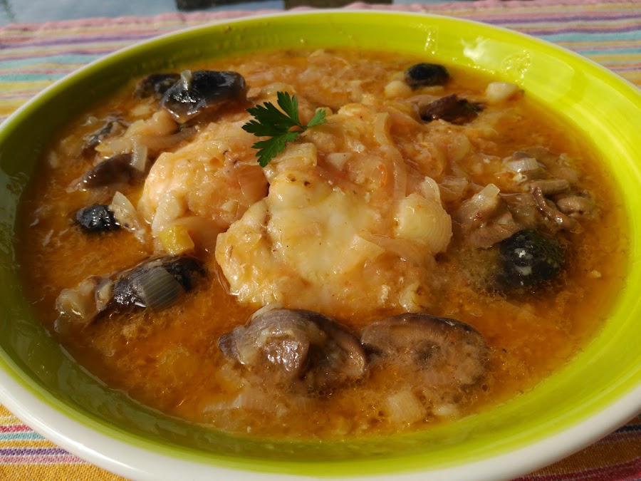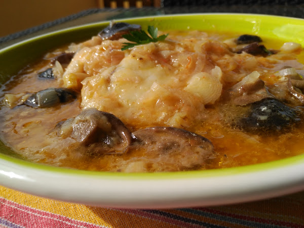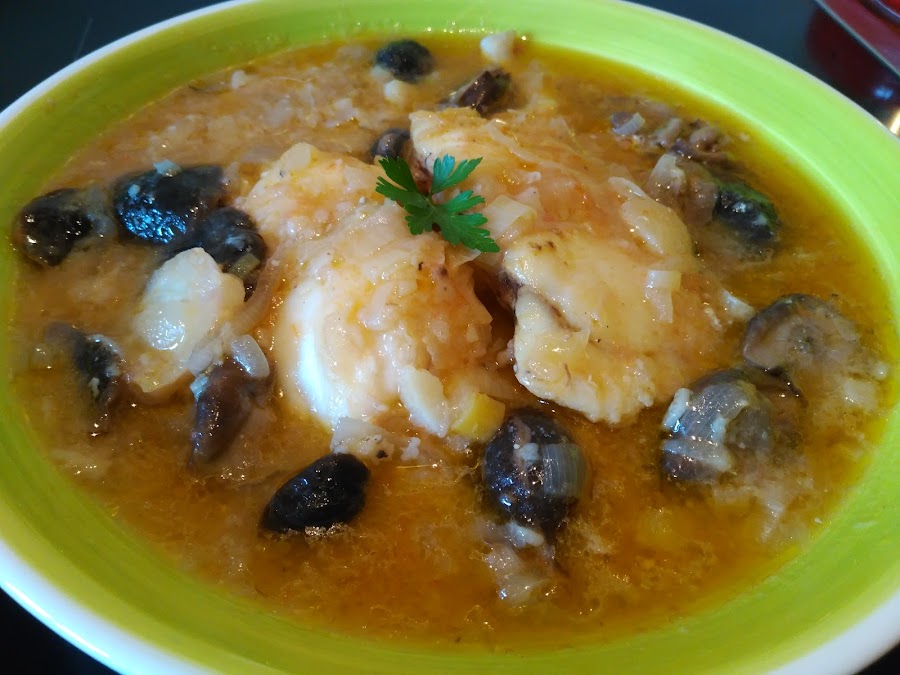 - Escurrimos las setas y las añadimos a la cazuela junto con el rape, dejamos que haga chup-chup 10 minutitos y .....a disfrutar!!