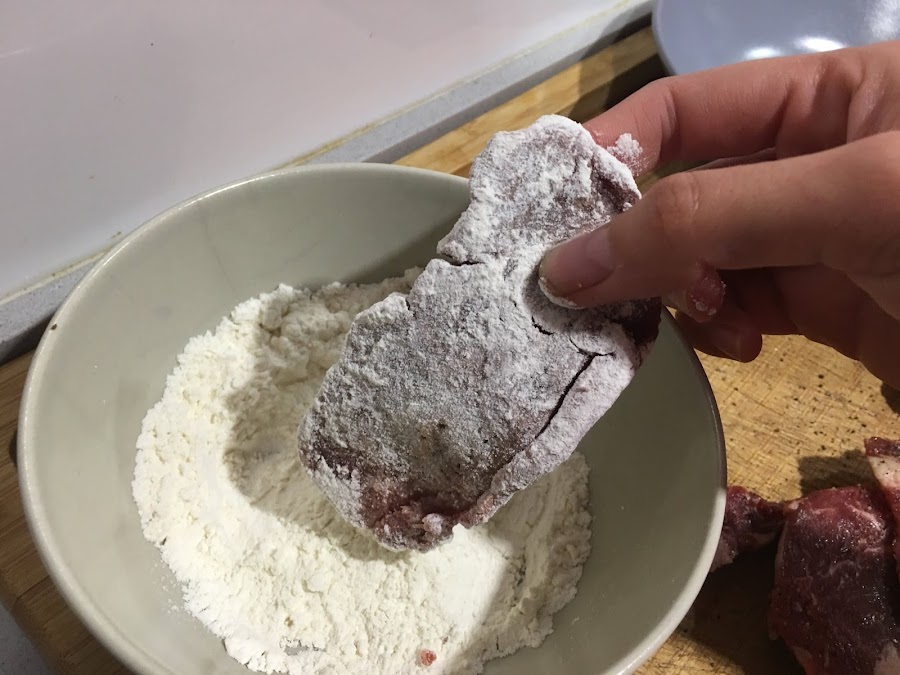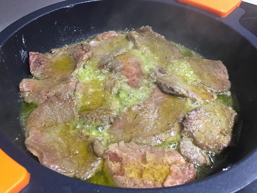 1. Salpimentamos el solomillo de ternera con la flor de sal de soso factory. Enharinamos cada filete. En una cazuela calentamos el aceite de oliva virgen extra y marcamos levemente los filetes. No hay que freírlos solo se trata de marcarlos para que la carne no pierda su jugo. Retiramos y reservamos en un plato.