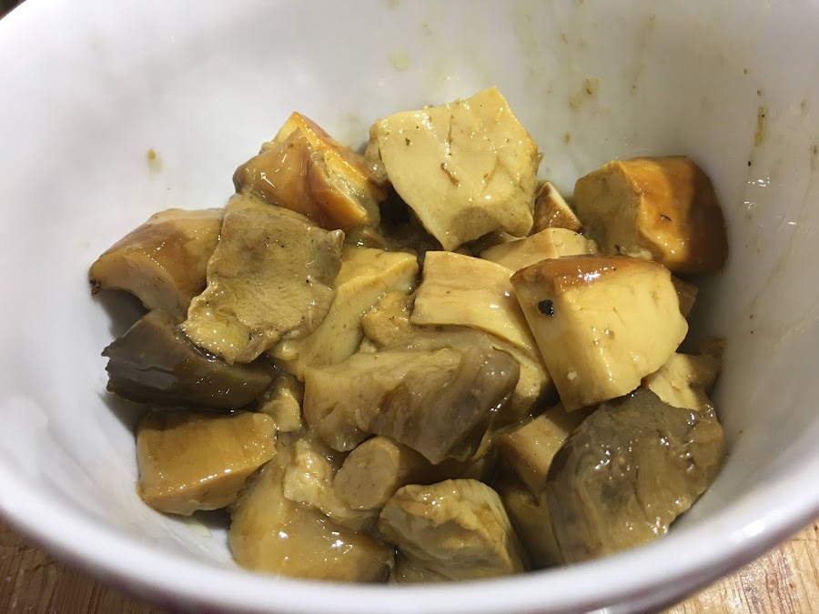 4. Pasados los 60 minutos incorporamos los boletus edulis en conserva de la Chinata. Estos boletus son unos de los más apreciados por su textura y sabor, realmente deliciosos. Los dejamos durante 5 minutos para que se integren en la salsa.