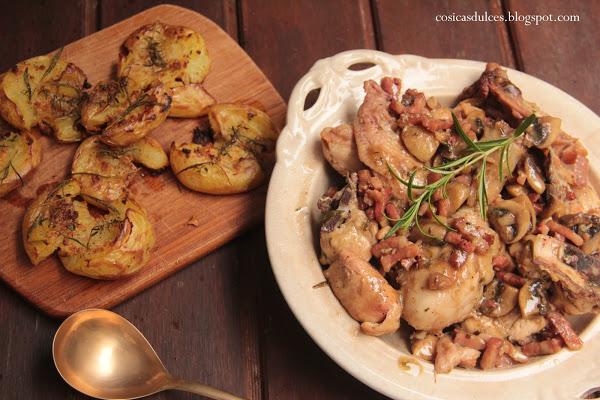 Una vez que ha reducido la vertemos sobre los trozos de pollo y servimos. Yo presenté el plato acompañado de unas patitas al horno cuya receta podéis ver AQUÍ