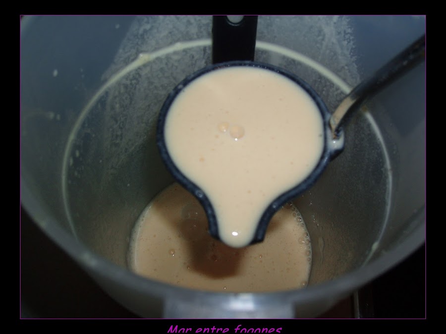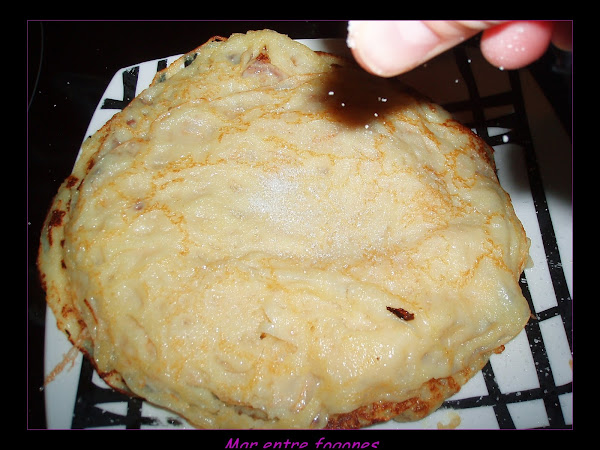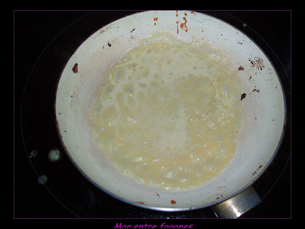 Cuando esta bien caliente se echa un poco de la mezcla anterior (yo lo hago con un minicucharon como el de la foto) y se deja que se haga.