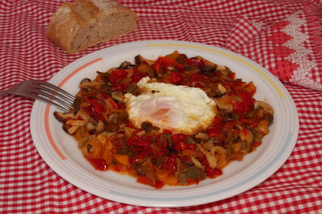 Tenía un montón de pimientos en casa y antes de que se estropearan me puse manos a la obra en ésta fritada con un variado de setas. Estupendo acompañamiento a unos huevos fritos, carnes, pescados… No os podéis imaginar ¡qué manjar! En éste caso la he acompañado de unos huevos fritos.