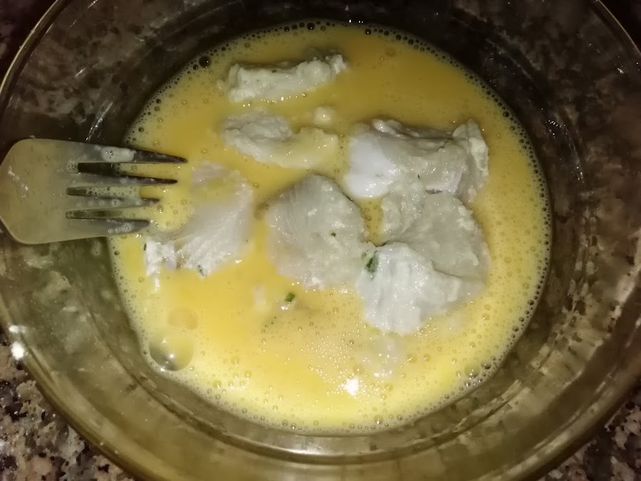 Cuando llega el momento de prepararlo, ponemos el cazón en un escurridor y le quitamos todo el ajo, una vez sin nada de líquido pasamos por harina y antes de poner en la sartén también lo pasé por huevo, esto último opcional, en la receta que seguí sólo manda por harina pero yo improvisé a mi manera, y el rebozado lo hice igual que para los FRITOS DE PIXIN