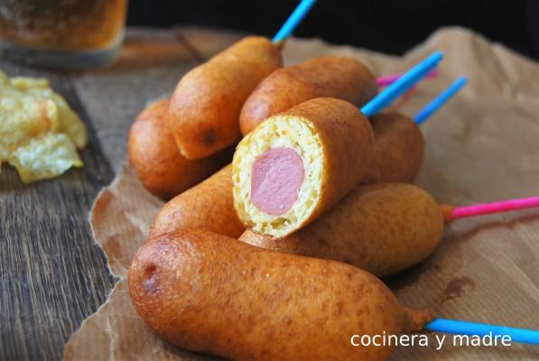 Vamos a viajar a América del Norte con esta rica receta; unos deliciosos perritos calientes de maíz o corn dogs caseros.