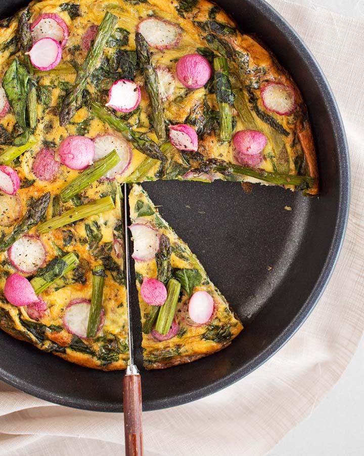 La clásica frittata italiana puede ser tan sencilla como una mezcla de huevos, sal, pimienta, aceite y cebolla. En Shoot the Cook siempre intentamos ir un poco más allá y experimentar con los sabores para dar un toque de originalidad a cada plato. De varios experimentos nos quedamos con esta Frittata de trigueros y rabanitos que nos parece una combinación, ¡rica, rica!, y muy saludable.