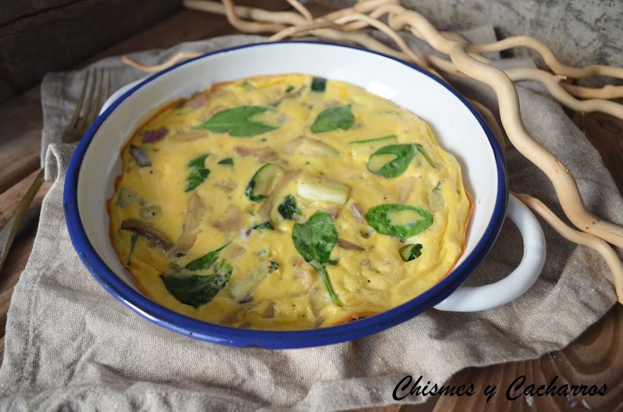 En unos 15 minutos está lista para comer. Yo use un paquete de verduras con setas que había comprado para hacer un wok y al final salió una riquísima frittata.