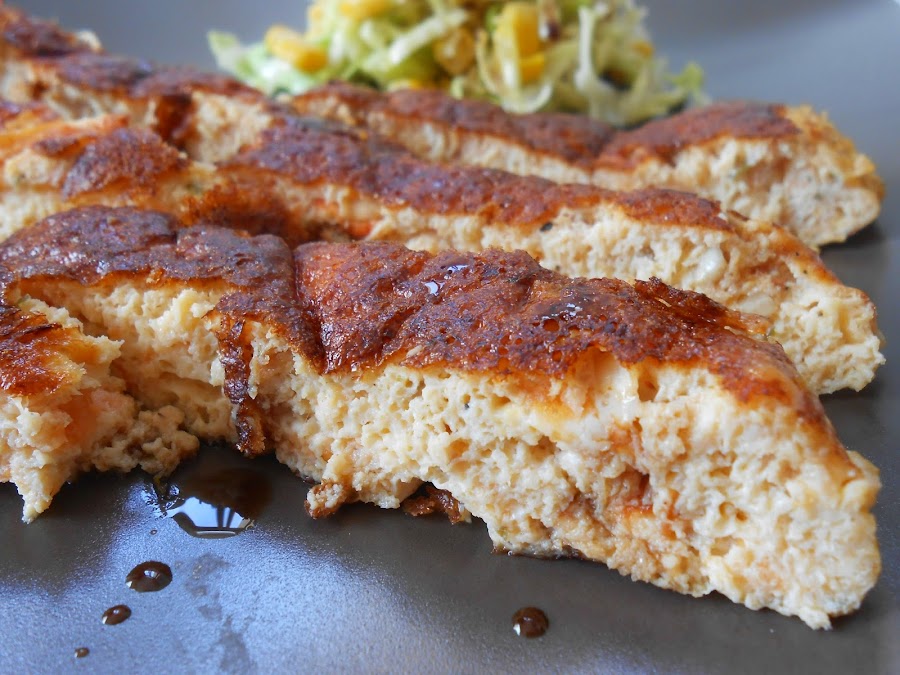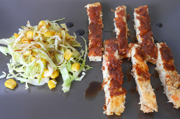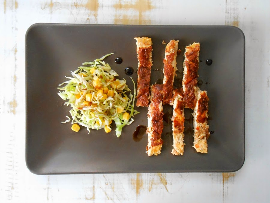 Una vez cocida, la cortamos en tiras y servimos con ensalada a gusto. Además preparé un aderezo de aceto balsámico y miel...quedó muy bueno.