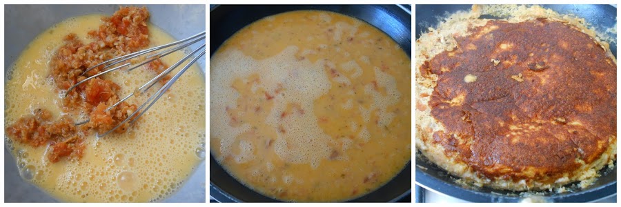 En un bol batimos los 5 huevos, salpimentamos y agregamos la preparación de atún. Volcamos en una sartén engrasada con aceite y cocinamos a fuego bajo hasta que se dore. Le damos la vuelta para que se dore por el otro lado.