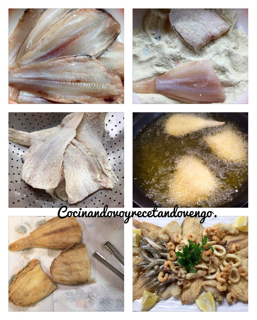 NOTA: Entre otras variantes puede ponerse rodajas de merluza, salmonetes, cazón en adobo, chipirones, puntillitas, como os decía según gustos o el género que tengan en la pescadería. Más abajo os dejo algunas otras técnicas como el adobo, el rebozado y al limón que se suelen incluir en estas frituras variadas por si las queréis preparar o consultar.