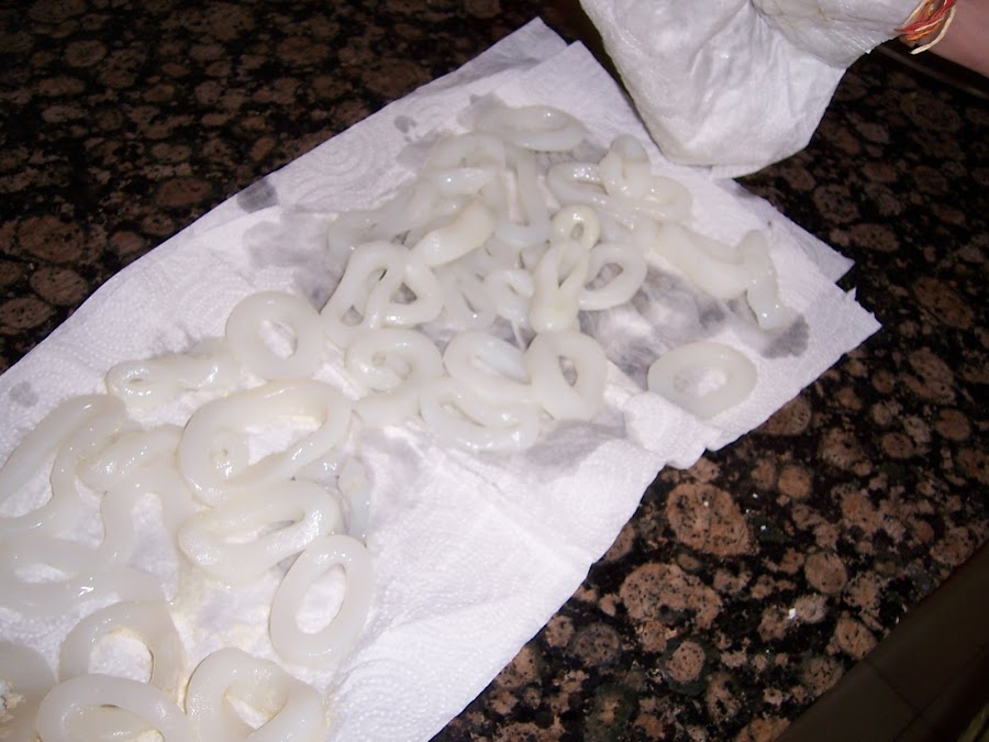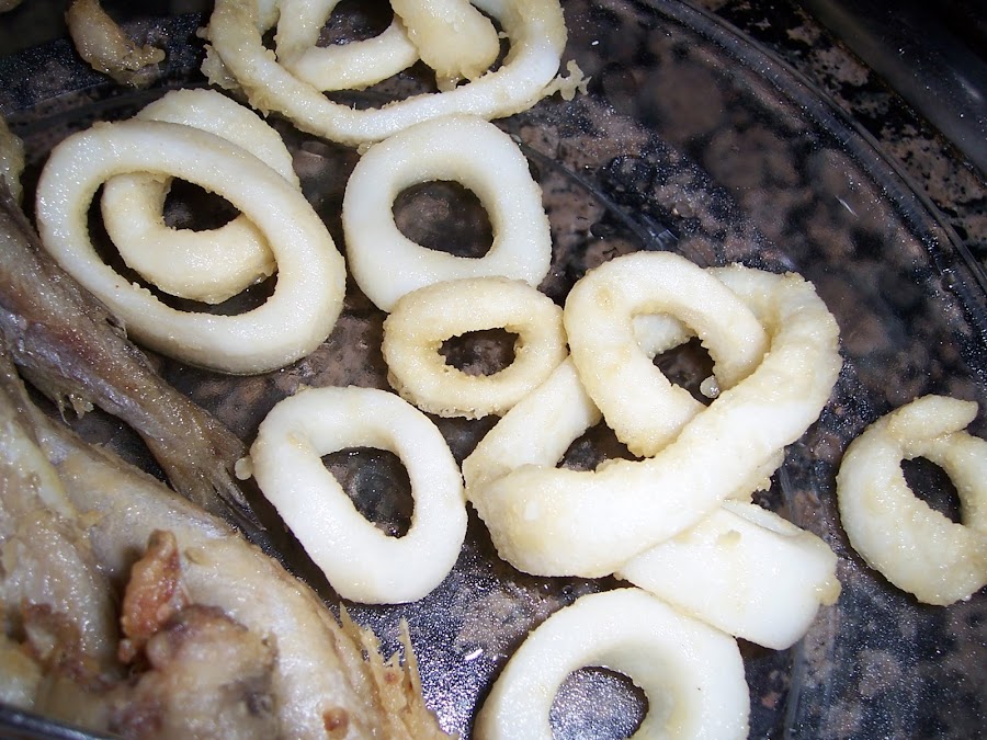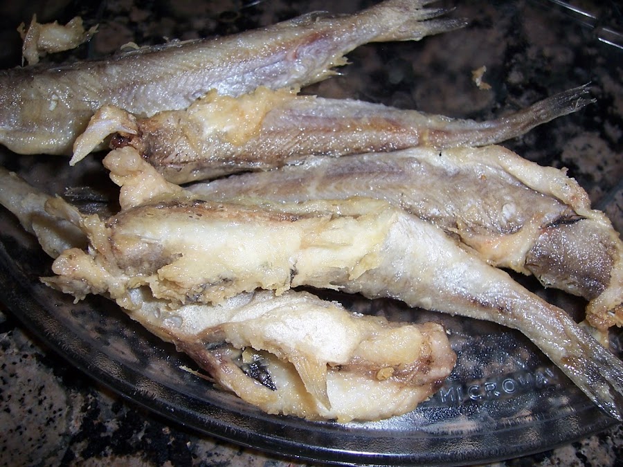 Ponemos abundante aceite a calentar y cuando esté bien caliente (al echar una miga de pan sube rápidamente) vamos pasando el pescado por harina y friendo, depende del tamaño del pescado lo dejaremos más o menos tiempo en el aceite, para la móllera un par de minutos igual que las anillas.
