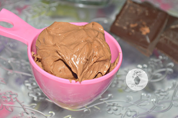 ¿Que me ha conquistado? su textura suave, ligera y firme, su intenso sabor a chocolate, muy similar al de una mouse de chocolate, ¡hummm! y a diferencias de otros frosting y cremas esta esta hecha a base de yemas de huevo, con lo que esta mas enriquecida y tiene una estructura mucho mas cremosa y estable.