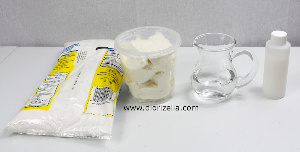 Los ingredientes que necesitas son: azúcar de confección, manteca emulsificada, agua tibia y sabor. Que como siempre usare mi preferido, la emulsión de almendras. Pero puedes usar el sabor de tu preferencia.