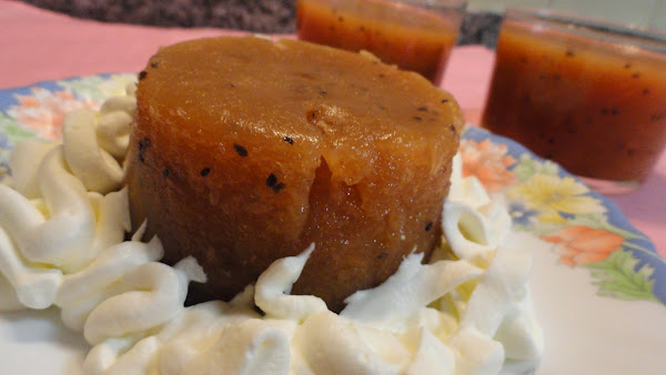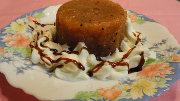 Dejamos templar, y metemos en el frigorífico hasta que cuaje la gelatina. Desmoldamos y decoramos con un poco de nata montada (crema de leche). Riquísimo.