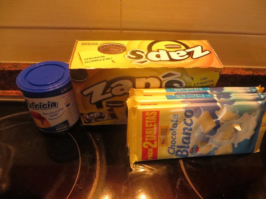 Derretimos en el microondas o al baño maría el chocolate blanco con la leche condensada. Mientras picamos las galletas tipo oreo. Una vez que tenemos el chocolate derretido y perfectamente integrado con la leche condensada, añadimos las galletas y le damos varias vueltas para que quede todo bien mezclado.