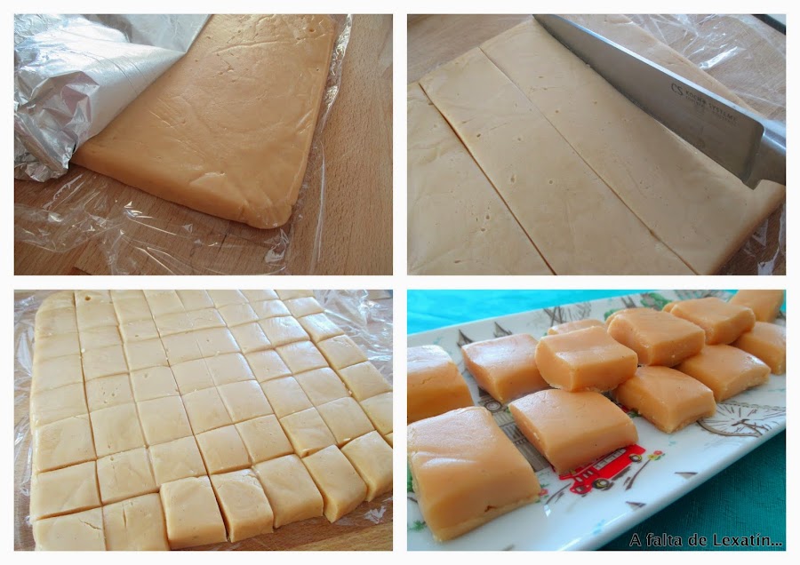 Desmoldar y cortar en porciones. A mí me salieron 64, es muy dulce así que no las corteis muy grandes