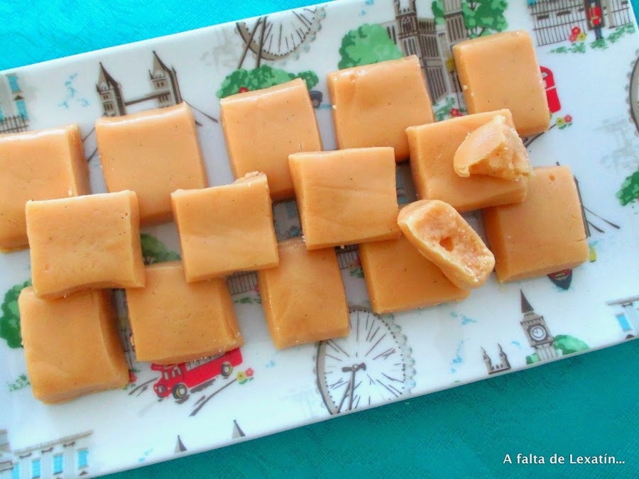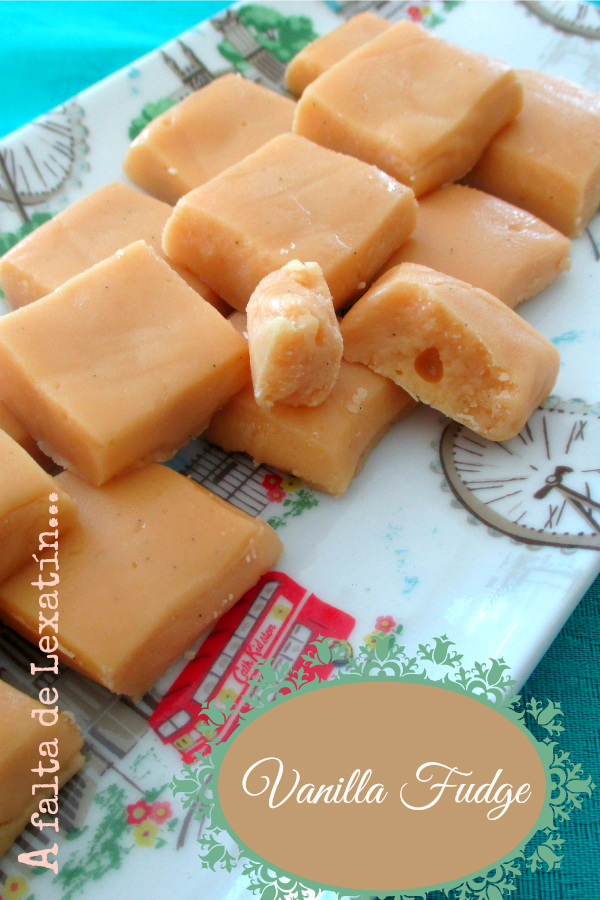 Pensando en los sitios que me gustaría volver a ver me acordé de una tiendita al lado del Kings College, donde preparaban a la vista de los clientes un fudge que se te caían los lagrimones de lo rico que estaba. Me parecía magia y siempre pensaba que algún día yo también me atrevería a hacerlo y tatata chaaaaaaaán... despues de 14 años lo he hechoooo y "diossanto" como está de bueno, creo que en este verano cuando vayamos a visitar a los amigos en vez de dátiles les voy a llevar unos caramelos de vainilla de éstos...engordar engordan lo mismo y están más buenos ;D