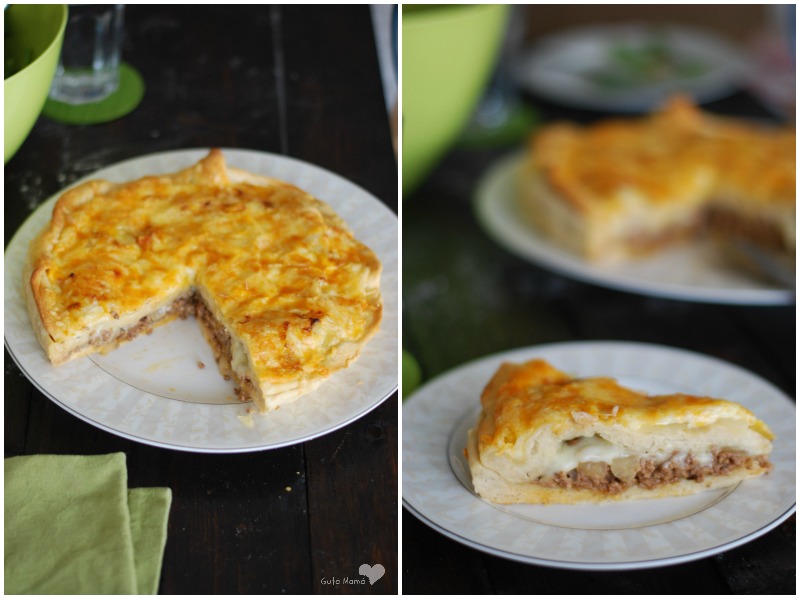 Y luego está la versión que se le ocurrió probar a mi hermano David. A ese corazón de mozzarella, decidió añadirle carne picada, y reconvirtió la Fugazzeta en una nueva versión a medio camino entre una pizza rellena y una empanada que se puede disfrutar como plato principal en una comida informal o incluso al aire libre porque es muy completa, y cómoda para llevarte de picnic o de excursión.