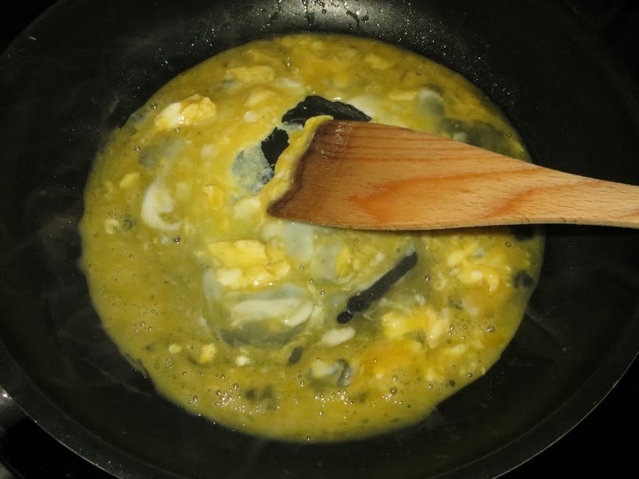 Lo primero que hacemos es tostar el pan en una sartén con un poco de mantequilla o en una tostadora y así reducimos el número de calorías. En un bol batimos los dos huevos con sal y un poco de pimienta, ponemos en una sartén un poco de mantequilla o aceite y echamos los huevos y les damos varias vueltas con una cuchara para hacerlos revueltos.